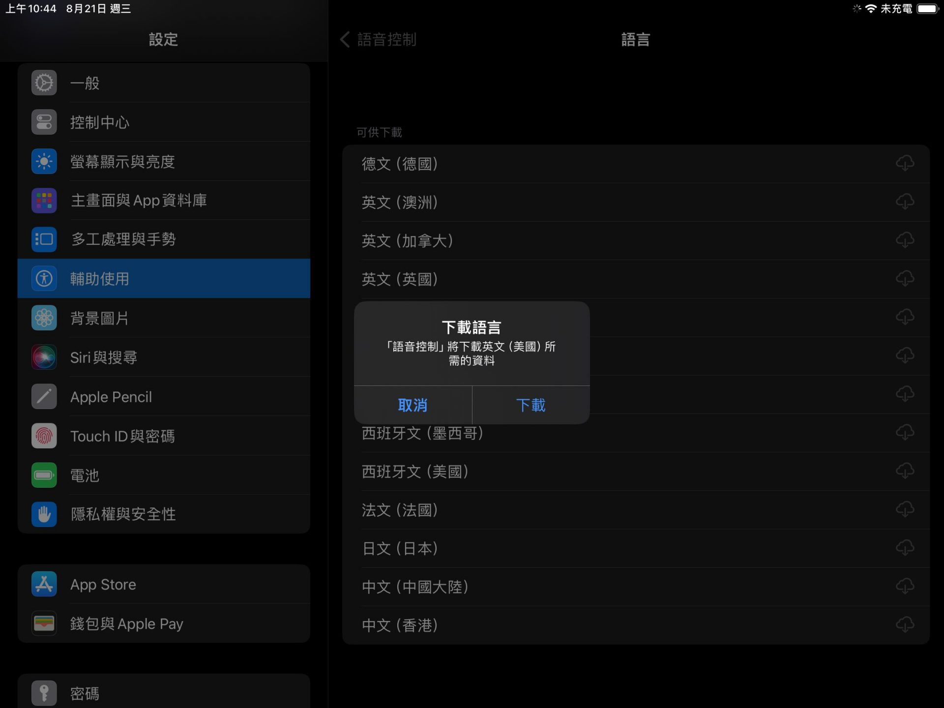 說明:LeSONO Leltek Ultrasound App 自 1.25.2.1 後提供聲控指令(“Freeze”、 “Live”,“Capture Image”等)功能。該功能是使用 iOS 系統的語言套件,由於該功能依裝置差異與通信條件限制,可先下載離線套件強化語音辨識功能。
